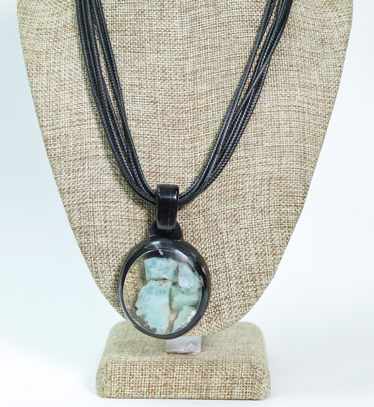 Collar varios cordones en cuerno, resina y larimar