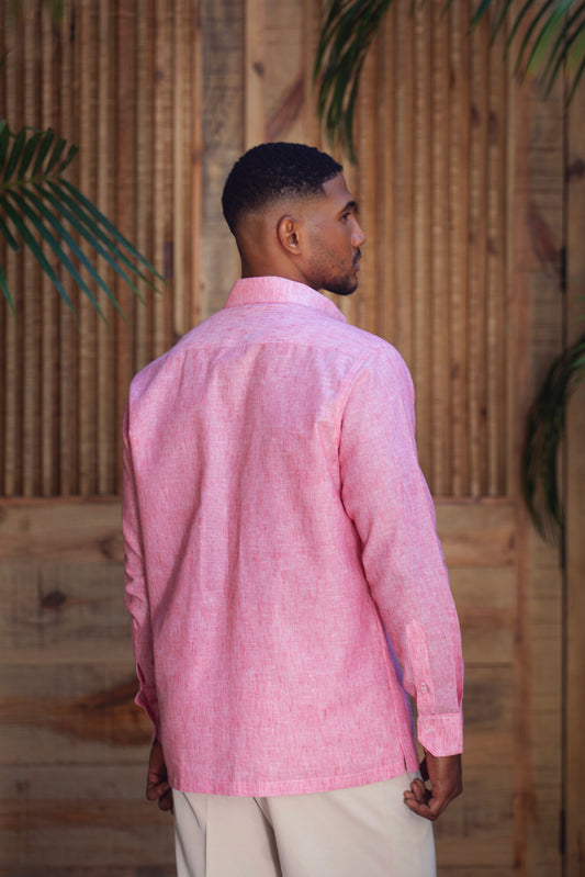 Camisas Rosa Coral Mangas Largas con bolsillos